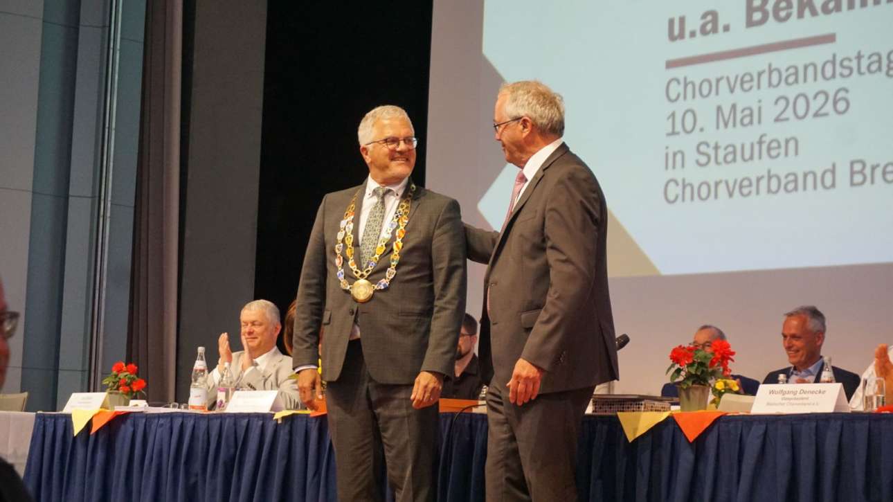 Josef Offele nach 19 Jahren verabschiedet und zum Ehrenpräsidenten ernanntBeim Chorverbandstag in Ettlingen konnte noch Präsident Jürgen Offele zahlreiche Ehrengäste, darunter den Präsidenten des Deutschen Chorverbandes Christian Wulff (Bundespräsident a.D.) begrüßen. Anschl. Wurden die Delegierten der Mitgliedsvereine vom Badischen JugenChor unter der Ltg. Von MD Matthias Böhringer begrüßt. In seinem Grußwort mahnte Christian Wulff …